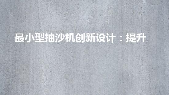 最小型抽沙機創新設計:提升效率的抽沙設備如何改變產業格局?